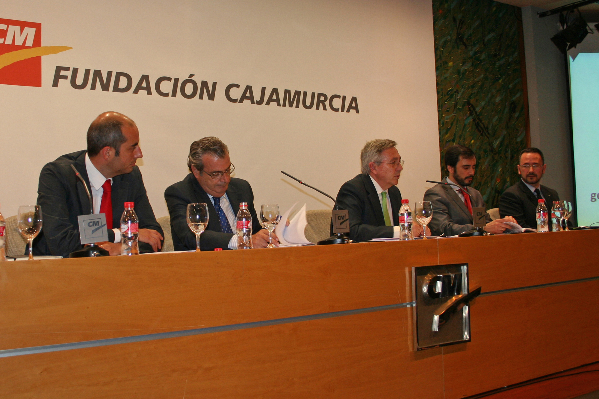 Posteriormente a la conferencia, se celebró una mesa redonda donde intervinieron el Ilmo. Sr. Director Gral. de Economía, Planificación y Proyectos Estratégicos. D. Luís Martínez de Salas y Garrigues; el Ilmo. Sr. Decano del Colegio Oficial de Ingenieros Industriales de la Región de Murcia, D. Andrés Ortuño Carbonell; el Presidente de la Asociación de Directivos de la Región de Murcia ADIMUR, D. Javier Navarro Vázquez; y el Director Territorial de Cajamurcia BMN, D. Juan Antonio Campillo Paredes.