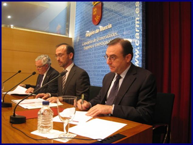 El consejero de Universidades, Empresa e Investigación, Salvador Marín, presidió esta mañana la firma del convenio entre los rectores de la Universidad de Murcia, José Antonio Cobacho, y el rector de la Universidad Politécnica de Cartagena, Félix Faura, para el desarrollo del proyecto 'Campus Mare Nostrum', que tiene el fin de lograr la excelencia internacional de las universidades públicas de la Región. Con este objetivo, la iniciativa aglutina todas las infraestructuras en las que se genera conocimiento para una mayor proyección internacional de toda la Región.