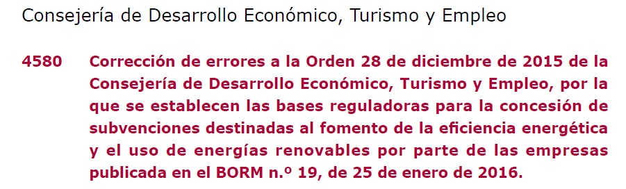 | Extracto Orden Ayudas Eficiencia Energetica publicado en BORM | Extracto BORM |