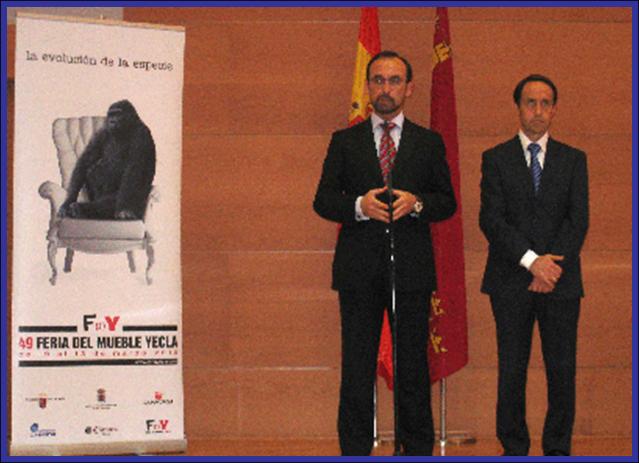 Yecla se convierte del 9 al 13 de marzo en el escaparate más importante de las nuevas tendencias del sector El consejero de Universidades, Empresa e Investigación, Salvador Marín, y el alcalde de Yecla, Juan Miguel Benedito, presentaron esta mañana la 49 edición de la Feria del Mueble de Yecla que contará con la mayor delegación de profesionales de otros países de su historia.