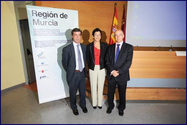Entre los encargados de presidir el acto, se encontraban, además del secretario general de la Consejería de Empresa, la directora general de Transferencia de Tecnología y Desarrollo Empresarial del Ministerio, Margarita Segarra, y el director general de Universidades y Política Científica, Eduardo Osuna, que presentó el Plan de Ciencia, Tecnología e Innovación de la Región de Murcia.