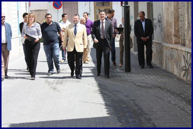 El director general de Comercio y Artesanía, Julio José Lorenzo, y el alcalde de Torre Pacheco, Daniel García, visitaron hoy las nuevas infraestructuras ejecutadas en las calles Soto, de las Niñas y Estanco, del área del Centro Comercial Abierto en Torre Pacheco. Las obras han tenido un coste total de 180.447 euros, de los cuales la Consejería de Universidades, Empresa e Investigación subvenciona 102.462 euros, procedentes de las ayudas a corporaciones locales para el fomento del sector comercial y de urbanismo comercial que concede la Consejería.