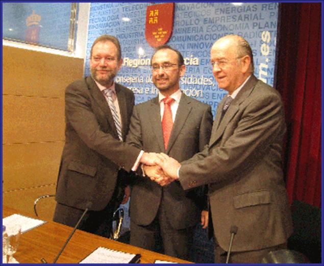 Las empresas escolares que se creen en el marco del Proyecto Educativo Empresa Joven Europea contarán con una cuenta de crédito de 300 euros para su puesta en marcha gracias al acuerdo firmado hoy por el consejero de Universidades, Empresa e Investigación, Salvador Marín, el consejero de Educación, Formación y Empleo, Constantino Sotoca, y el presidente de Cajamurcia, Carlos Egea.