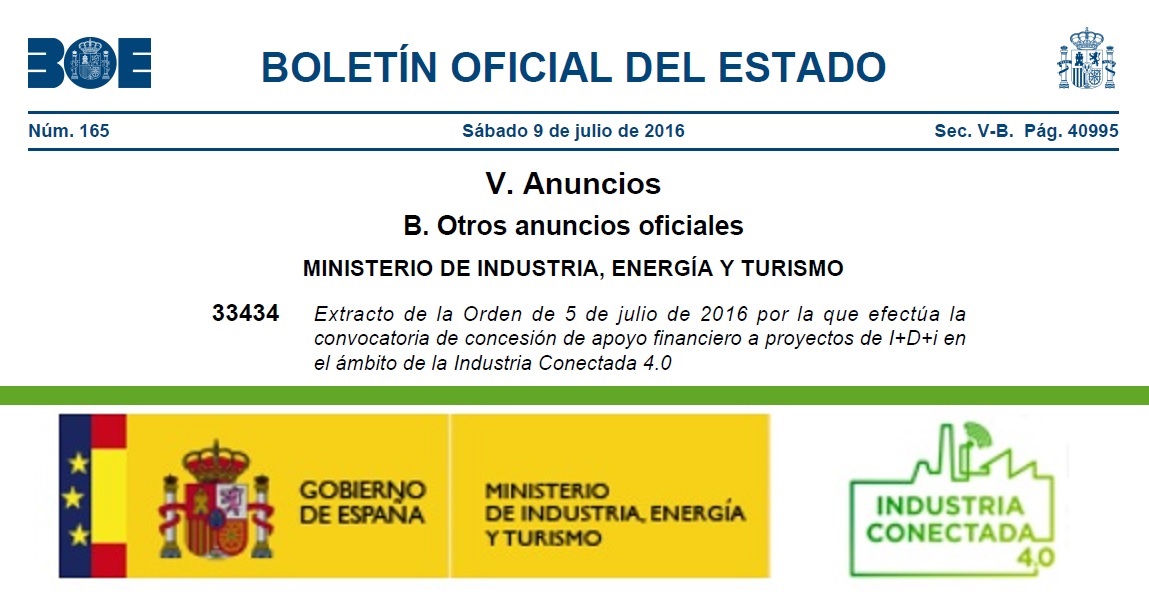 Convocatoria de concesión de apoyo financiero a proyectos de I+D+i enel ámbito de la Industria Conectada 4.0 Publicación BOE Extracto:Extracto Orden 5 julio 2006  Publicación BDNS : Convocatoria Completa   BDNS(Identif.):310936
