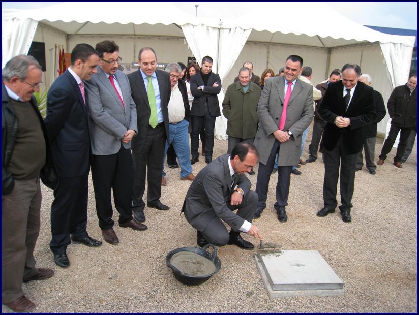 El consejero de Universidades, Empresa e Investigación, Salvador Marín, acompañado por el alcalde de Totana, José Martínez, puso hoy la primera piedra de un nuevo servicio industrial para el polígono 'El Saladar' que consiste en una estación de servicio y un aparcamiento de camiones, que abrirán sus puertas antes del próximo verano para aumentar la competitividad de las empresas.