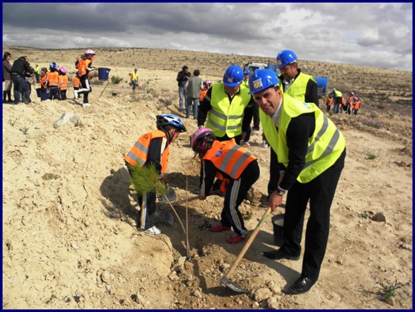 El plan de restauración ambiental de esta cantera suma más de 34 hectáreas repobladas, lo que supone más de 14.000 árboles entre pinos y acebuches. Esta jornada de concienciación sobre minería sostenible contó con la colaboración de Afarem y del Ayuntamiento de Lorca.